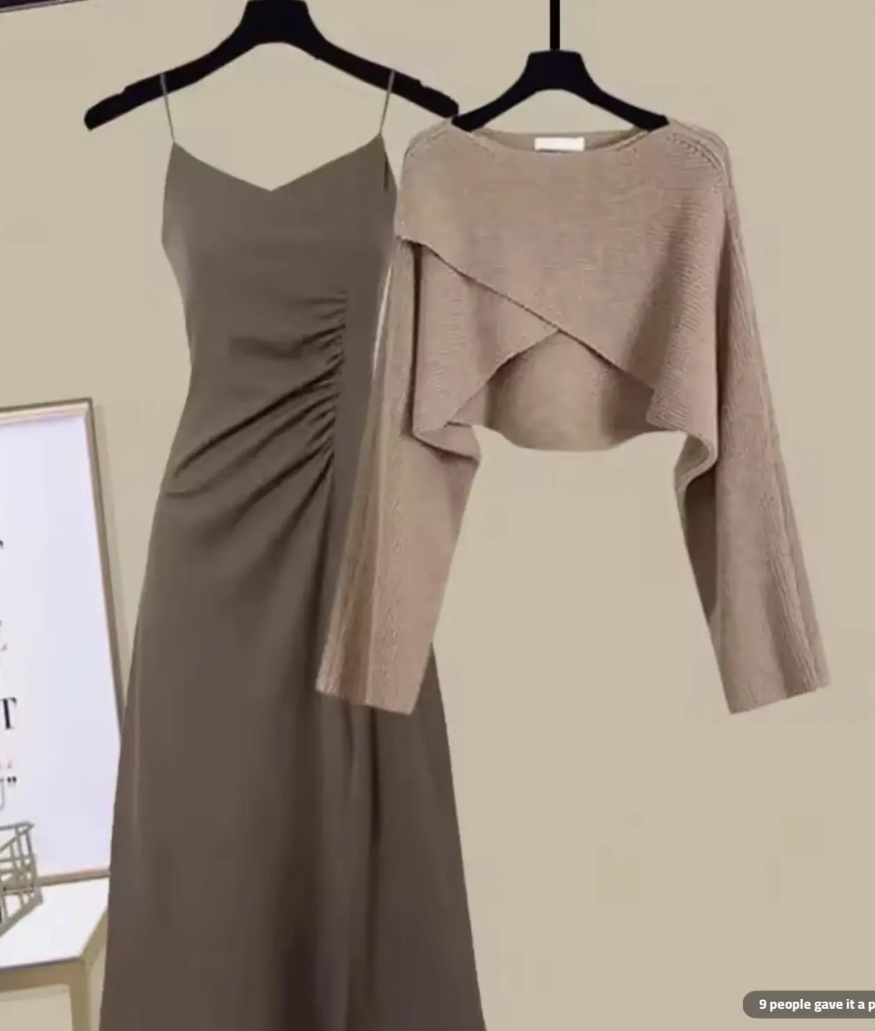 طقم أنيق مكون من قطعتين من البلوزة المحبوكة ، مناسب لخريف وشتاء